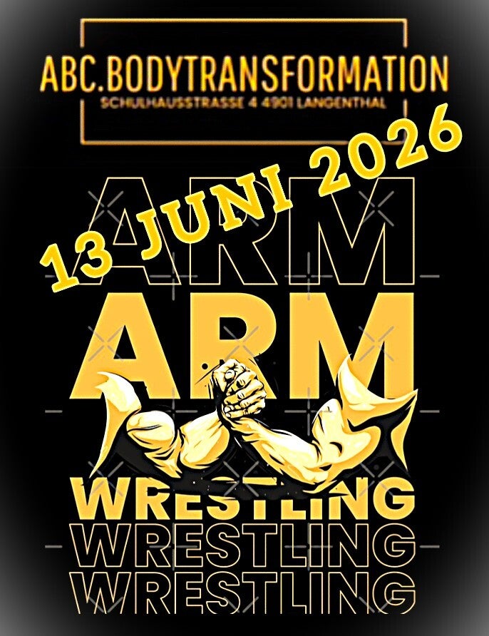 Unser spannendes Armwrestling-Event lockt mit Top-Ausstellern, actiongeladenen Matches und Preisen zu gewinnen. Erlebe Nervenkitzel am Tisch, wenn starke Athleten gegeneinander antreten. Zwischen den Duellen gibt es eine exklusive Degustation neuer Isoclear -Proteine, Creatine und Ashwaganda – probier die neuesten Produkte, frage die Experten und hole dir Tipps für Training, Ernährung und Regeneration. Zusätzlich warten attraktive Preise zu gewinnen, darunter Produktpakete, Monatsabo in einem Gym was auch für Bodybuilding ausgerichtet ist. Coaching-Einheiten von einem Warenwert 330.- . Sichere dir dein Ticket, genieße mitreißende Momente, Networking mit Gleichgesinnten und die Chance, Neuentwicklungen aus erster Hand zu testen. Sei dabei und spüre den Puls des Armwrestling!